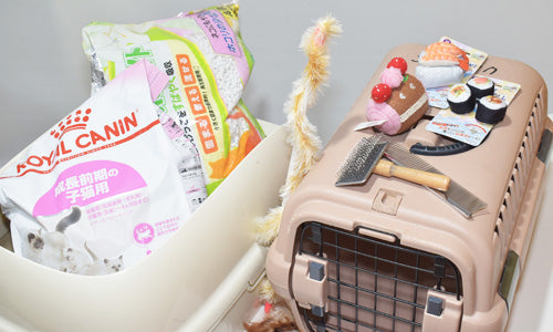 フード(日数分)・ブラシ・トイレ・猫砂・ゲージ・シャンプー・おもちゃ